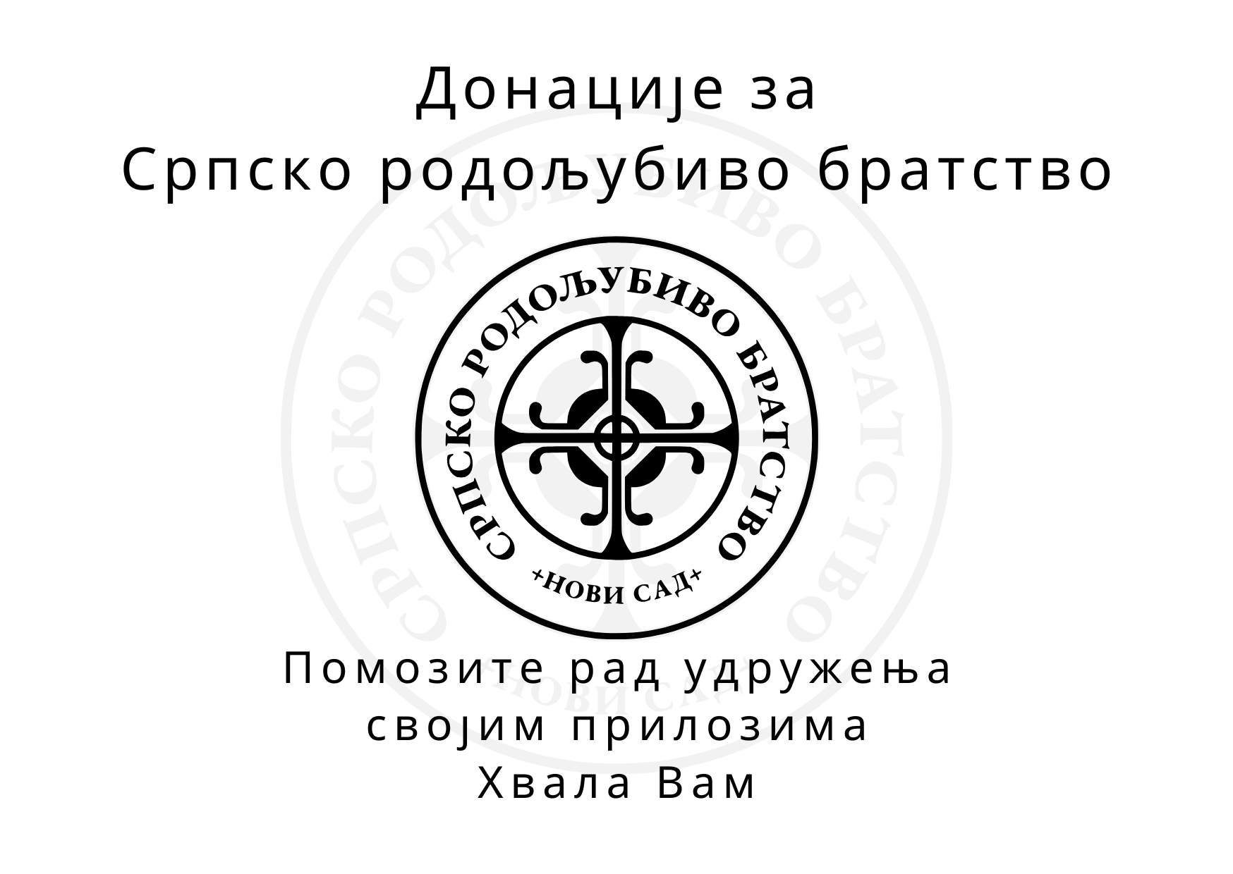 Прималац: Српско родољубиво братство, Доситејева 7, Нови Сад 21000