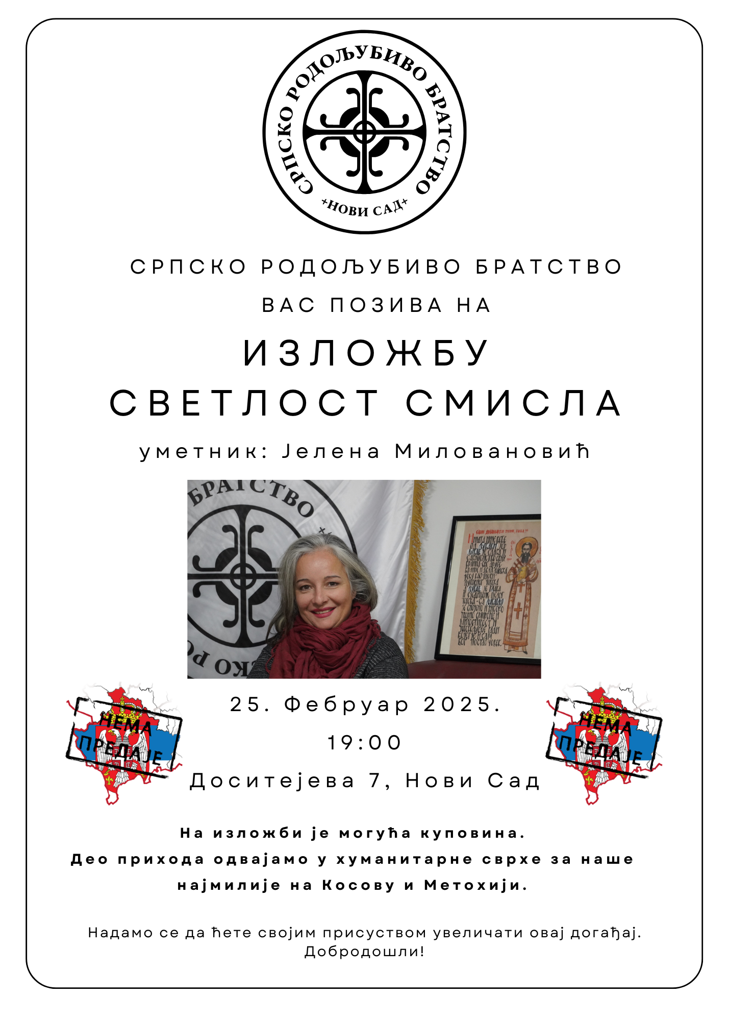 Српско родољубиво братство вас позива на: Изложбу Светлост смисла